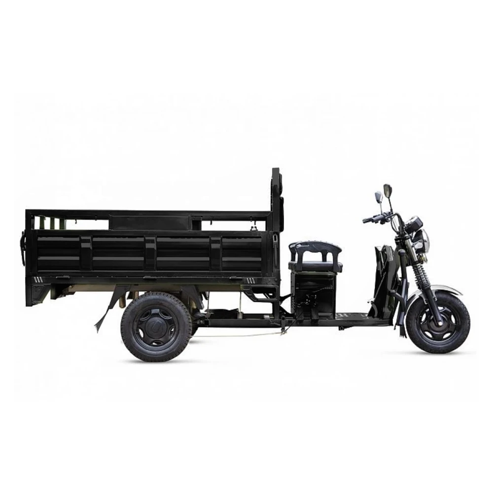 Грузовой электротрицикл Rutrike D4 NEXT 1800 60V1500W в черном цвете — это идеальный транспорт для решения любых логистических задач в городских условиях и за их пределами. Оснащенный мощным электродвигателем мощностью 1500 Вт и аккумулятором высокого напряжения 60V, он способен развивать скорость до 25 км/ч и обеспечивать пробег до 80 км на одном заряде. Его грузоподъемность составляет впечатляющие 1200 кг, что делает его незаменимым помощником в доставке товаров. Конструкция трцикла продумана до мелочей: легкий доступ к грузовому отсеку размером 1720×1120×460 мм, два типа тормозной системы — барабанные тормоза на передних и задних колесах, а также надежная подвеска с гидравлическими амортизаторами, обеспечивающая комфортную езду даже по сложным дорожным условиям. Время зарядки батареи составляет всего 8-10 часов, делая его практичным выбором для всесезонной эксплуатации. Грузовой электротрицикл Rutrike D4 NEXT — это сочетание мощи, надежности и удобства, что делает его идеальным выбором для бизнеса.