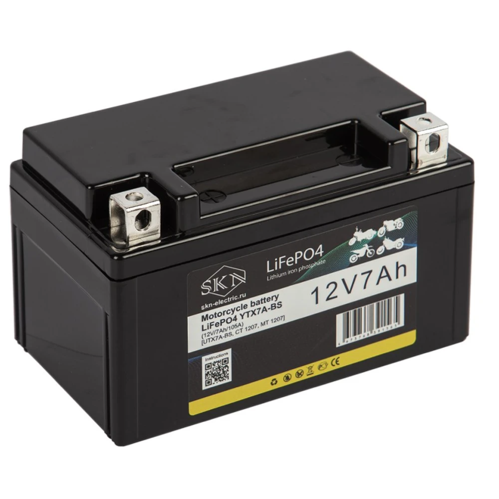 Аккумулятор для мототехники SKN LiFePO4 YTX7A-BS (12V/7Ah/105A) [UTX7A-BS, CT 1207, MT 1207]