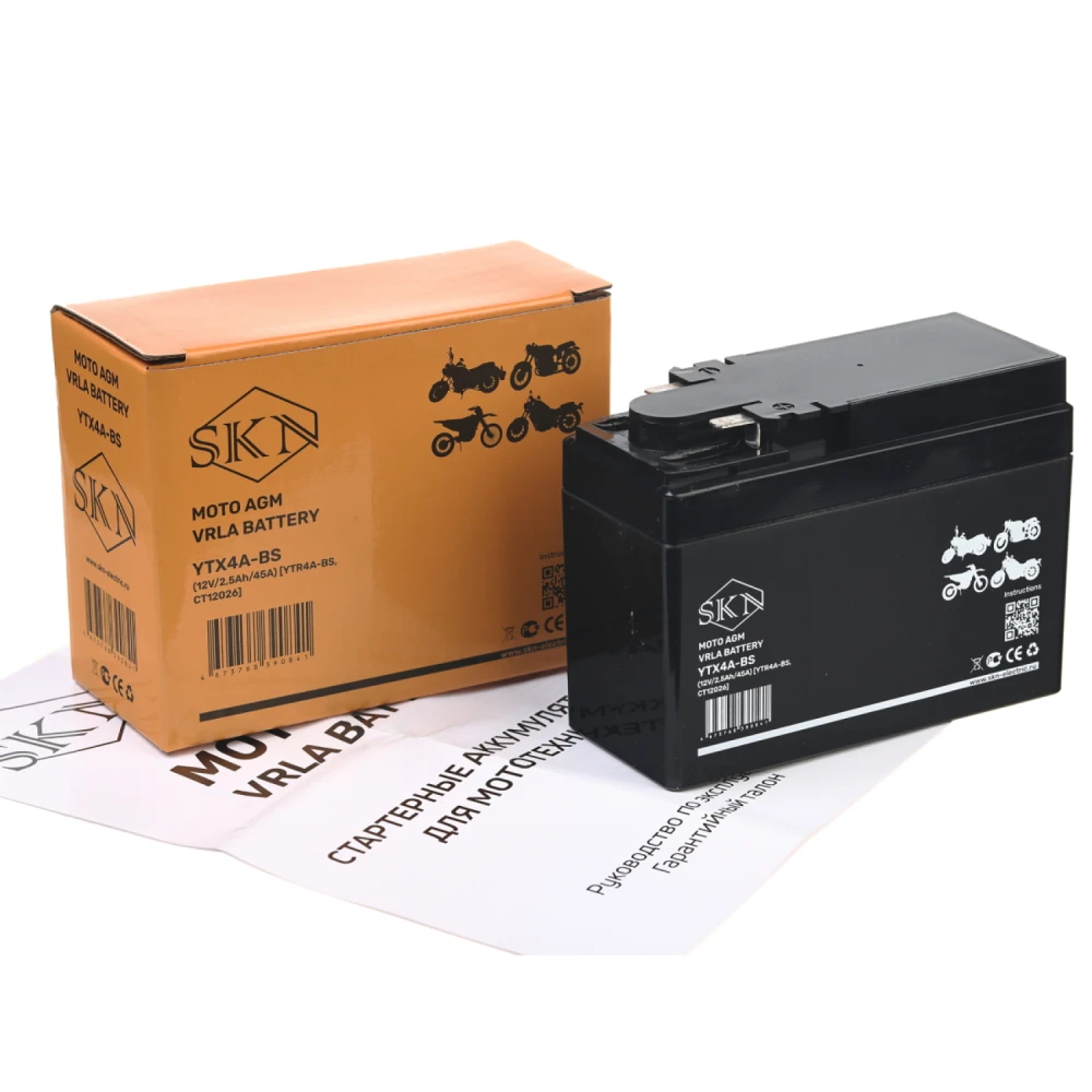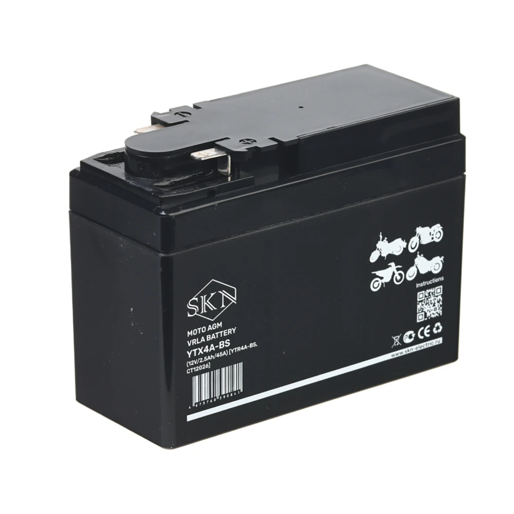 Аккумулятор стартерный для мототехники SKN YTX4A-BS (12V/2,5Ah/45A) [YTR4A-BS, CT 12026]
